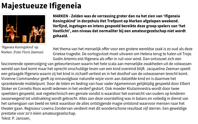 Verhaal:Euridpides schreef 2000 en 400 jaar geleden een verhaal over een Grieks koningskind ‘Ifigeneia’.